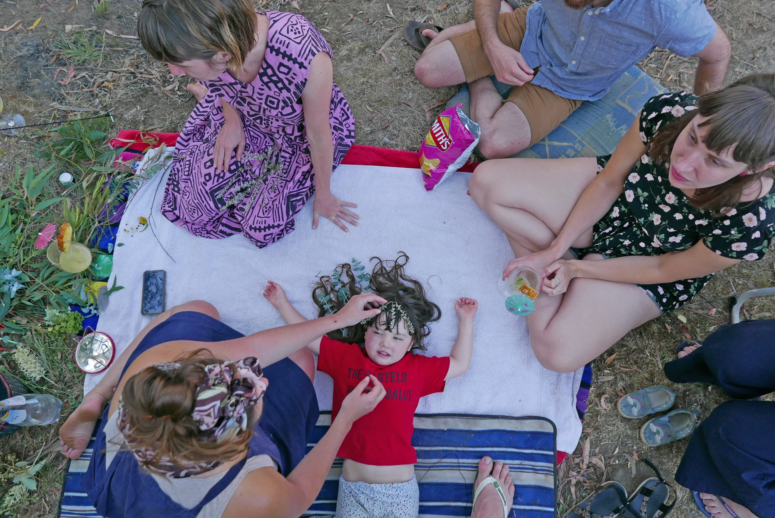 While on an annual camping trip with dear friends, a walk on the beach led to coral and seaweed portraits on the sand. The process reminded me of the feeling a bride might have when she's been zipped up by a team of people, or of the placebo effect associated with visiting a caring doctor – that intimate and therapeutic feeling of being fussed over for 15 minutes. As a result, the ritual carried on, and became known as "portrait therapy".